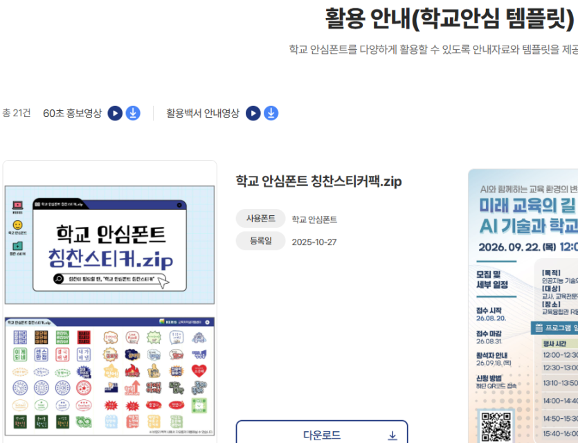 학교 안심폰트 다운로드(교육저작권지원센터)